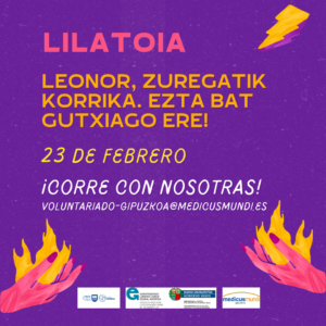 Si queréis formar parte de esta causa os animamos a inscribiros en la LILATON 2025, y a que después nos enviéis un email antes del 31 de enero voluntariado-gipuzkoa@medicusmundi.es informándonos que queréis correr con nosotras. Como en anteriores ediciones, os haremos llegar una camiseta que nos identificará como grupo. Nos indicáis la talla en el email.
