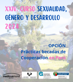Opción de realizar prácticas becadas de Cooperación: Entre el alumnado interesado, 4 personas serán seleccionadas para realizar prácticas en proyectos de lucha por los Derechos Sexuales y Derechos Reproductivos en colaboración con una organización feminista, y socia local de medicusmundi gipuzkoa, en Perú. Las prácticas se realizarán durante 2 meses, en verano de 2024.